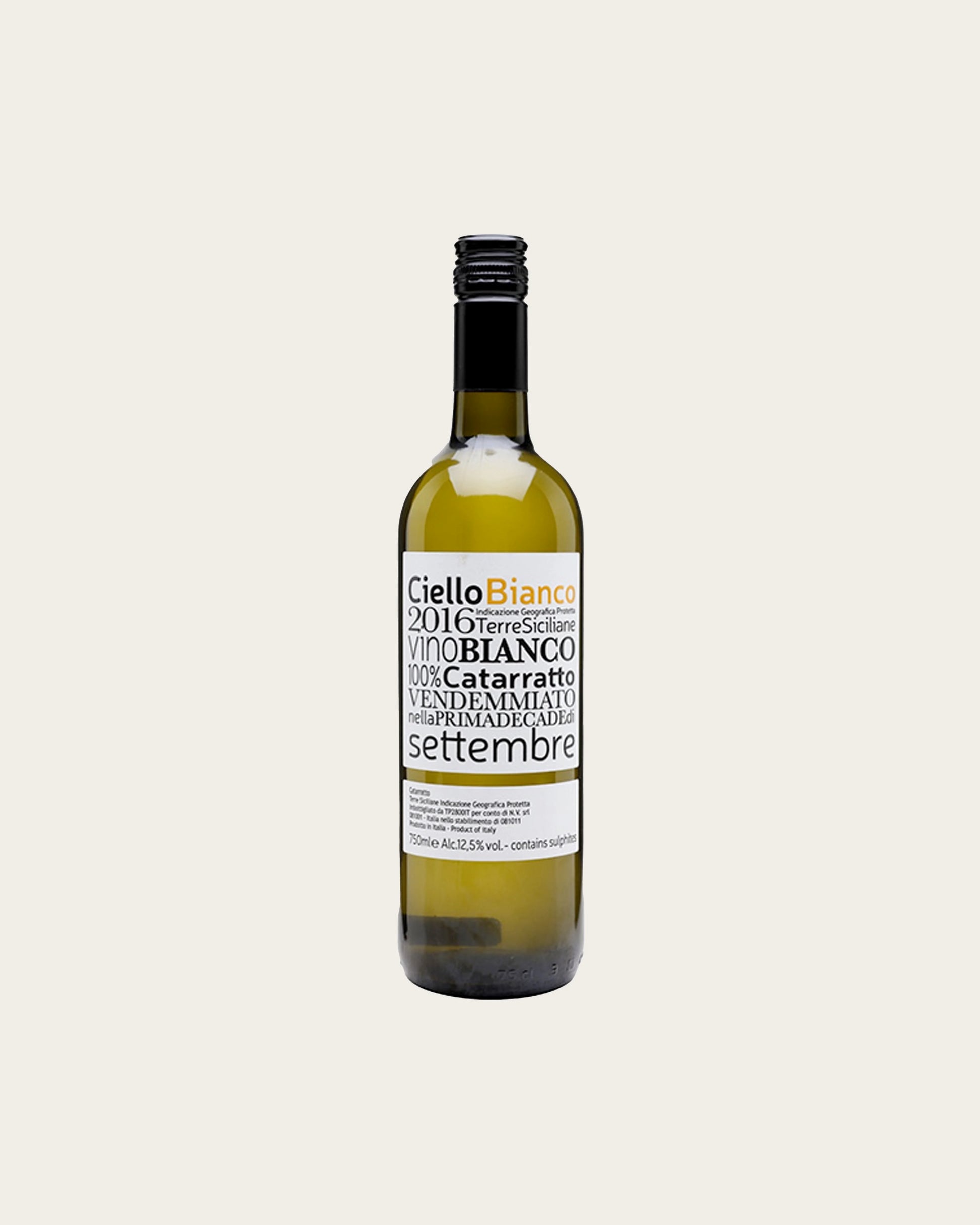 Ciello Bianco Catarratto is a vibrant natural white from Sicily, crafted by the dynamic Vesco family. Made entirely from organically grown Catarratto, it showcases the island’s sun-soaked character and coastal freshness. The wine is fermented naturally with minimal intervention, resulting in a lightly hazy, expressive style. Aromas of citrus peel, white flowers, and orchard fruit lead to a crisp palate with gentle texture and a pleasantly dry finish. Produced in Alcamo’s rolling hills, Ciello Bianco reflects Sicily’s heritage while embracing modern sustainable winemaking. Its straightforward charm and refreshing profile make it an ideal everyday Mediterranean white